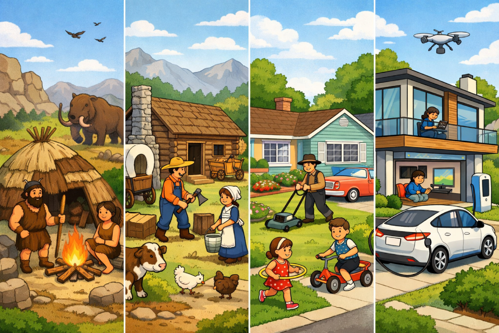 Have you ever thought about how homes looked long ago? Let’s travel back in time and see how houses have changed!